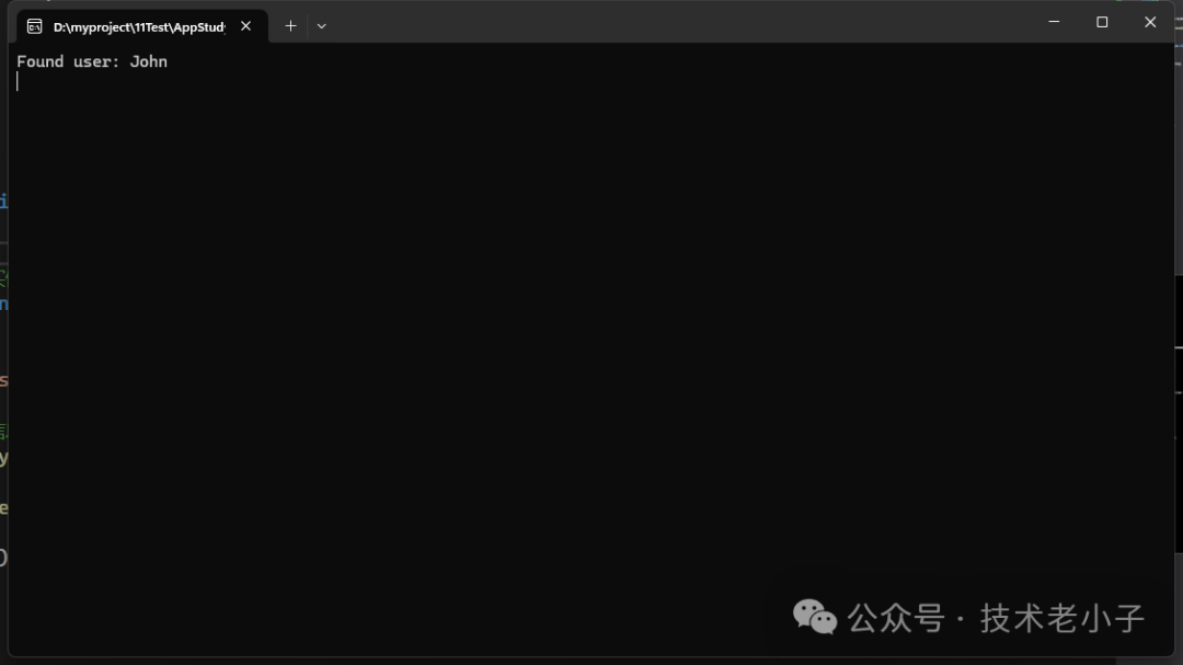 Console.WriteLine($"Found user: {user.Name}");