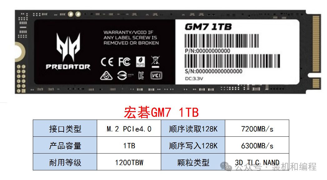 【7】 宏碁GM7 1T 核心优势:国产长江TLC颗粒,PCIe 4.0满速盘(7200/6300 MB/s),价格亲民。 适用场景:学生党装机、入门级游戏本。 参考价:1TB版约469元。