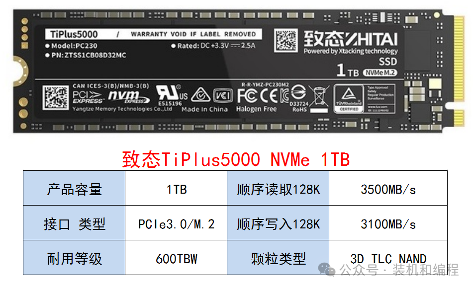 核心优势:满速PCIe 3.0方案,长江TLC颗粒+无缓设计,顺序读写3500/3100 MB/s,价格低于国际品牌。 适用场景:性价比装机、大文件传输。 参考价:1TB版约430元。