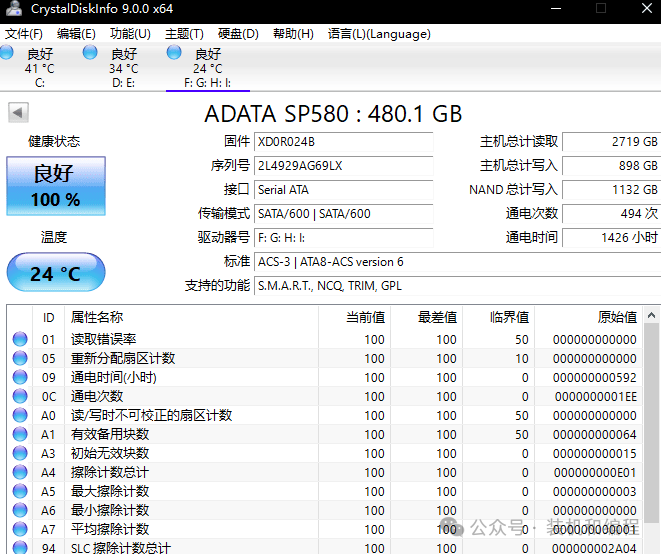 CrystalDiskInfo(查看剩余寿命、SMART状态)。