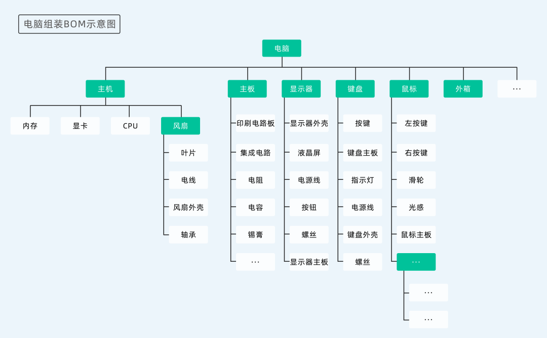 • 明确物料需求:帮助你知道生产一个产品需要哪些材料,采购人员可以根据这个清单去采购原料。