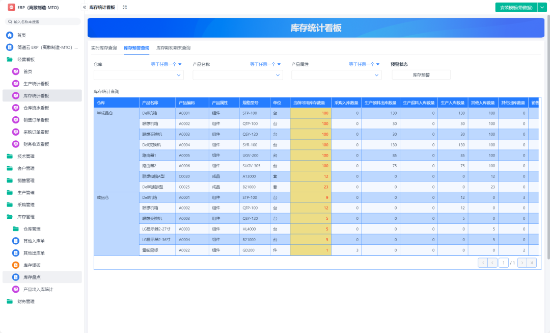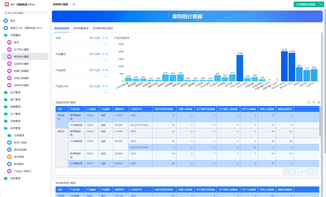 • 动态库存调整:当生产进度变化时,ERP系统能够动态调整物料库存,减少不必要的库存占用。例如,当某个物料的生产计划提前或推迟时,系统会根据需求预测调整库存和采购计划。