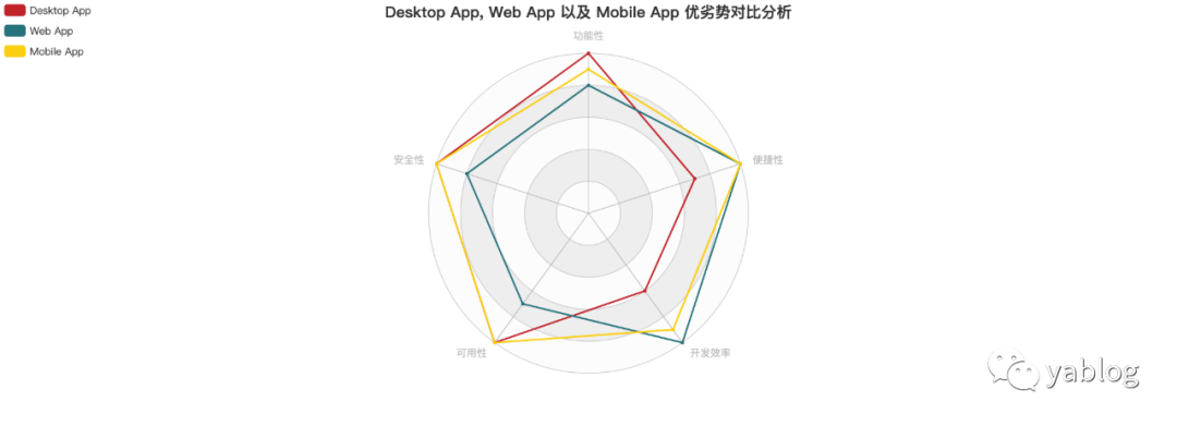 为了更直观一点,笔者做了一个对比图 图7 应用软件优势劣势雷达图 总的来说:在粗犷式的互联网上半场(面向终端消费用户),速度占据主导地位,应用程序层面的竞争力主要取决于便捷性与开发效率,此时 Web 应用程序首当其冲;而在精细化的互联网下半场(面向企业用户),质量是根本目标,应用程序层的安全性、功能性(尤其支持复杂的商业逻辑)决定了它的主要竞争优势,桌面软件则极有可能再次接住主流应用程序的接力棒,焕发第二春。 关于未来 技术如同自然一样,同样遵循着『物竞天择,适者生存』的进化理念。桌面软件不会消失,会重新繁荣;Web 应用程序也不会衰落,会持续迭代(迈入3.0);开发者更不会因此而失业,会继续解决更多场景的问题。它们都会有光明的前途。 阅读原文:原文链接 该文章在 2025/4/14 10:25:37 编辑过 |