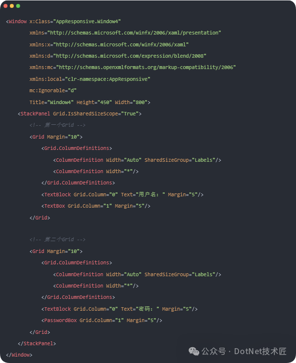 SharedSizeGroup允许不同Grid之间的列保持相同宽度。