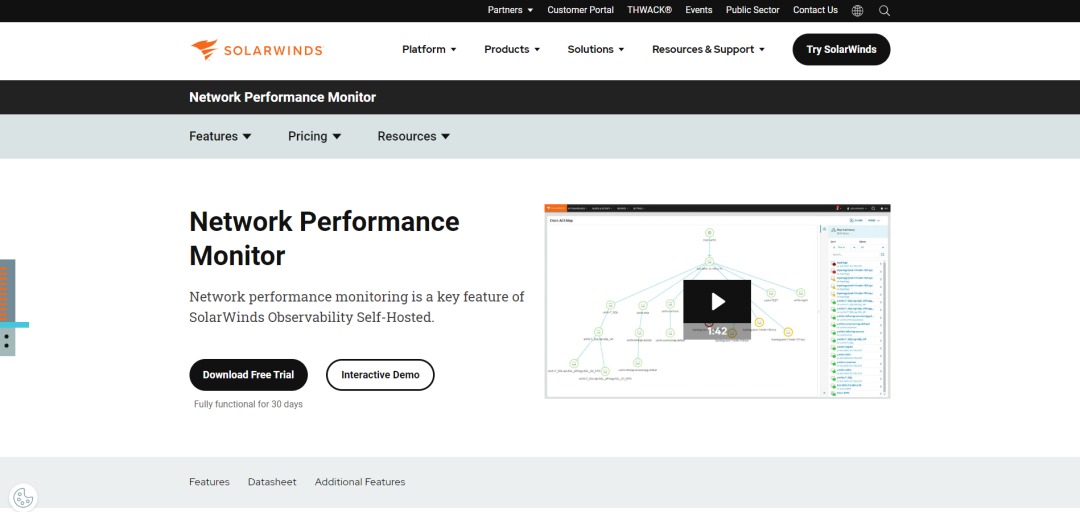 小贴士:有点技术门槛,但学会了PromQL,你就是监控界的“代码侠”!🦸♂️ 5. SolarWinds NPM:商业界的“监控贵族”👑SolarWinds Network Performance Monitor(NPM)是个商业监控软件,界面友好、功能强大,中大型企业用它简直如虎添翼!🐯