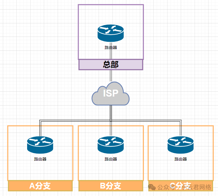 总部和A、B、C三个分支之间两两做IPSEC VPN隧道即: