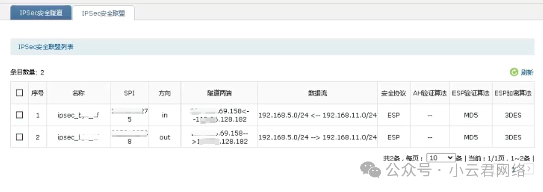 在路由器的页面中,可以看到IPSEC VPN的安全联盟是已经正常建立的,所以基本可以验证上述猜想:UDP 500和4500端口是允许放行的。