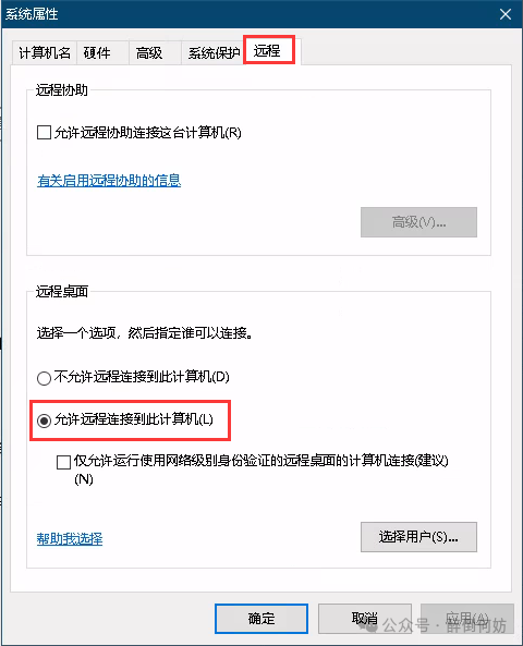 在客户端界面,输入远程桌面的地址和端口即可以发起连接和登陆。如果不输入端口,则是使用 3389 为远程桌面的默认端口。下面先说在 Windows 10 系统下开启远程桌面功能,注意 Windows 家庭版(Home)没有这个功能,需要换成其他的版本。首先,在设置(系统属性)界面上,找到“关于”,如图所示,点击它。然后在窗口的右边或下方找到”相关设置“-”高级系统设置“,如图所示,点击它。在打开的对话框中找到”远程“,单选”允许远程连接到此计算机“,再点击确定即可。通常情况下,远程桌面服务就已经可以正常工作了,极端的情况下,可能还需要检查一下防火墙的设置及网络监听情况。如果不知道电脑的IP地址,可以使用 ipconfig 查看netstat -ano | find "3389"