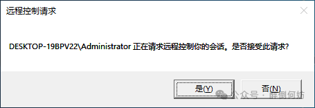 执行这个命令以后,会在 min2 的那个会话窗口中弹出是否允许对应远程控制的选择,点击是,当前会话就可以由对方接管了,但当前会话仍然可以操作键盘鼠标,可以与对方协同操作,比如一起查查资料,浏览网页或是做一下调查问卷什么的,具体怎么用完全可以发挥你的想象。