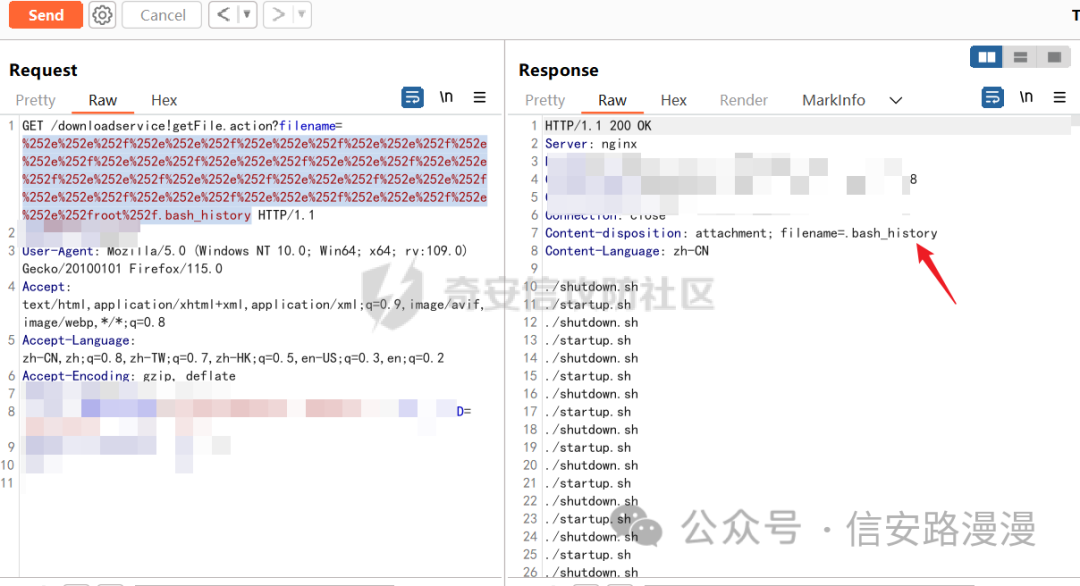 首先说第一种url,这种url存在的安全问题很少,如果非要测的话,可以对后面的文件名和后缀进行Fuzz,从而在文件中获取敏感信息等 接着第二种url格式,这种url既然id参数可控,那么我们可以对此参数进行SQL注入,服务器既然接收了id参数,那么应该会对id参数进行数据库查询操作。如果这个id值有规律,那么也可以对id值进行遍历操作。 最后第三种url格式,此种安全问题就是可能存在任意文件下载漏洞,也是本文着重讲解的主要点。 在Linux和Windows系统中,有点开发经验的师傅都知道,在系统中可以用绝对路径和相对路径来表示一个文件的地址,此处不作相对路径和绝对路径的讲解。./在系统中表示当前目录,../为当前目录的上一级目录。这样的话安全问题就显而易见了,我们只需要在我们控制的文件名前加上 ../ 跳到上一级目录,然后一直跳就可以跳到根路径了,想下载&读取需要的文件就可以造成任意文件读取漏洞了。 漏洞位置根据功能点判断文件上传后的返回url中、文件下载功能,文件预览功能,文件读取功能 如果上诉功能点存在那么可以抓包根据下面的url判断 根据url判断