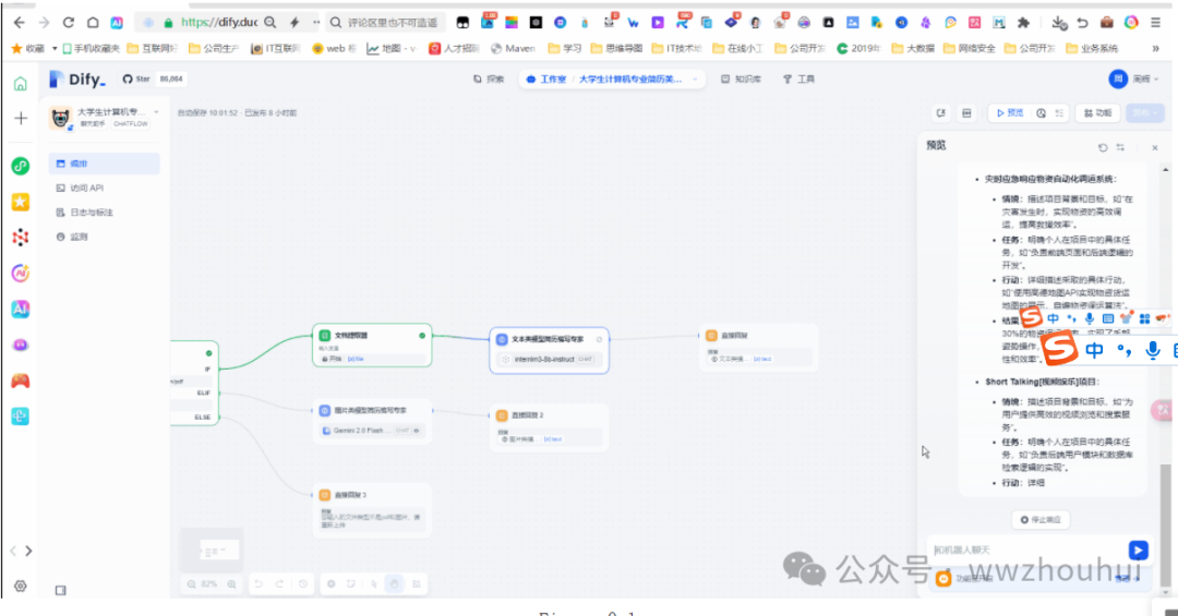 1.前言每年,数以百万计的大学生涌入求职市场,简历成为他们踏入职场的首张名片。然而,现实却令人担忧,近 97% 的大学生简历无法有效彰显自身竞争力。常见问题包括篇幅冗长、重点模糊、主观性描述泛滥、格式千篇一律,还夹杂过多负面信息。这些不足,让他们在求职中错失良机。 今天带大家实现一个专业且免费的大学生简历美化工作流,利用 Dify 这一强大的开源平台,能为大学生们排忧解难。它整合主流大语言模型、拥有直观的提示编排界面等优势,通过特定工作流,能将平淡简历雕琢成吸睛佳作,大幅提升面试邀约率。接下来,就让我们深入探究如何制作这一神奇的工作流。 我们首先看下工作流整体页面