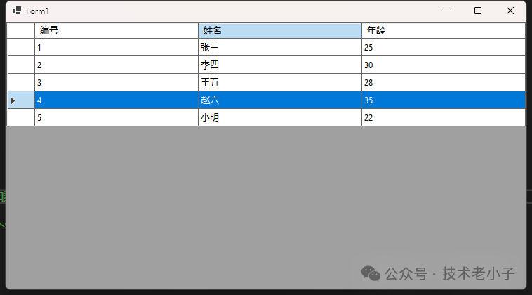 dt.Rows.Add(4, "赵六", 35, DateTime.Now.AddDays(5));