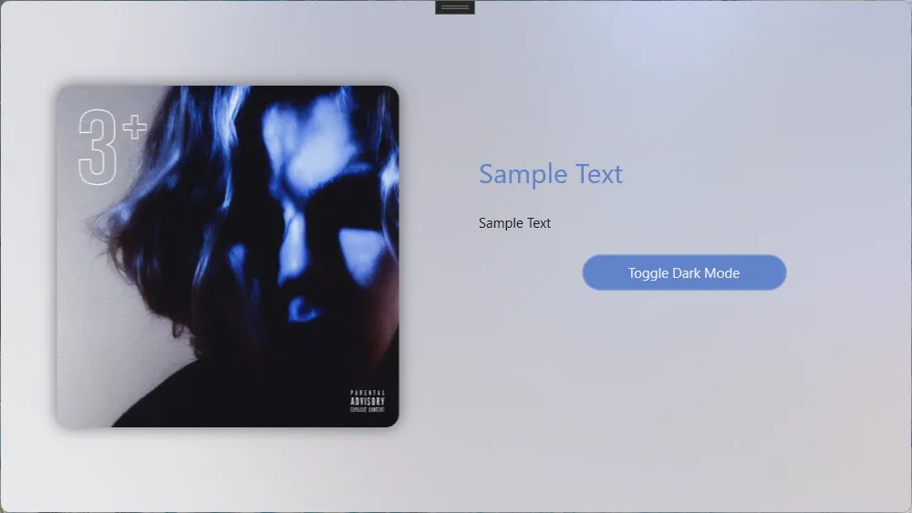 最后计算焦点颜色(FocusAccentColor)只需要根据颜色模式调整亮度即可。 二、使用方法将代码仓库中的 首先开启项目允许使用UnSafe代码: <PropertyGroup> <!-- 允许使用UnSafe代码 --> <AllowUnsafeBlocks>true</AllowUnsafeBlocks> </PropertyGroup> 导入本地图像文件,计算主色调、焦点色调并应用Mica效果背景: var image=new BitmapImage(new Uri(ImagePath)); SelectedImg = image; var bitmap = image.ToBitmap(); //major color var majorColor = bitmap.GetMajorColor().AdjustColor(IsDarkMode); var focusColor = majorColor.ApplyColorMode(IsDarkMode); App.Current.Resources["AccentColor"] = new SolidColorBrush(majorColor); App.Current.Resources["FocusedAccentColor"] = new SolidColorBrush(focusColor); //background bitmap.ApplyMicaEffect(IsDarkMode); BackgroundImg = bitmap.ToBitmapImage(); 其中, 三、注意事项