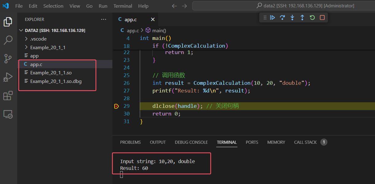 有了这个 so 文件后,接下来我们新建一个 c文件,参考代码如下: