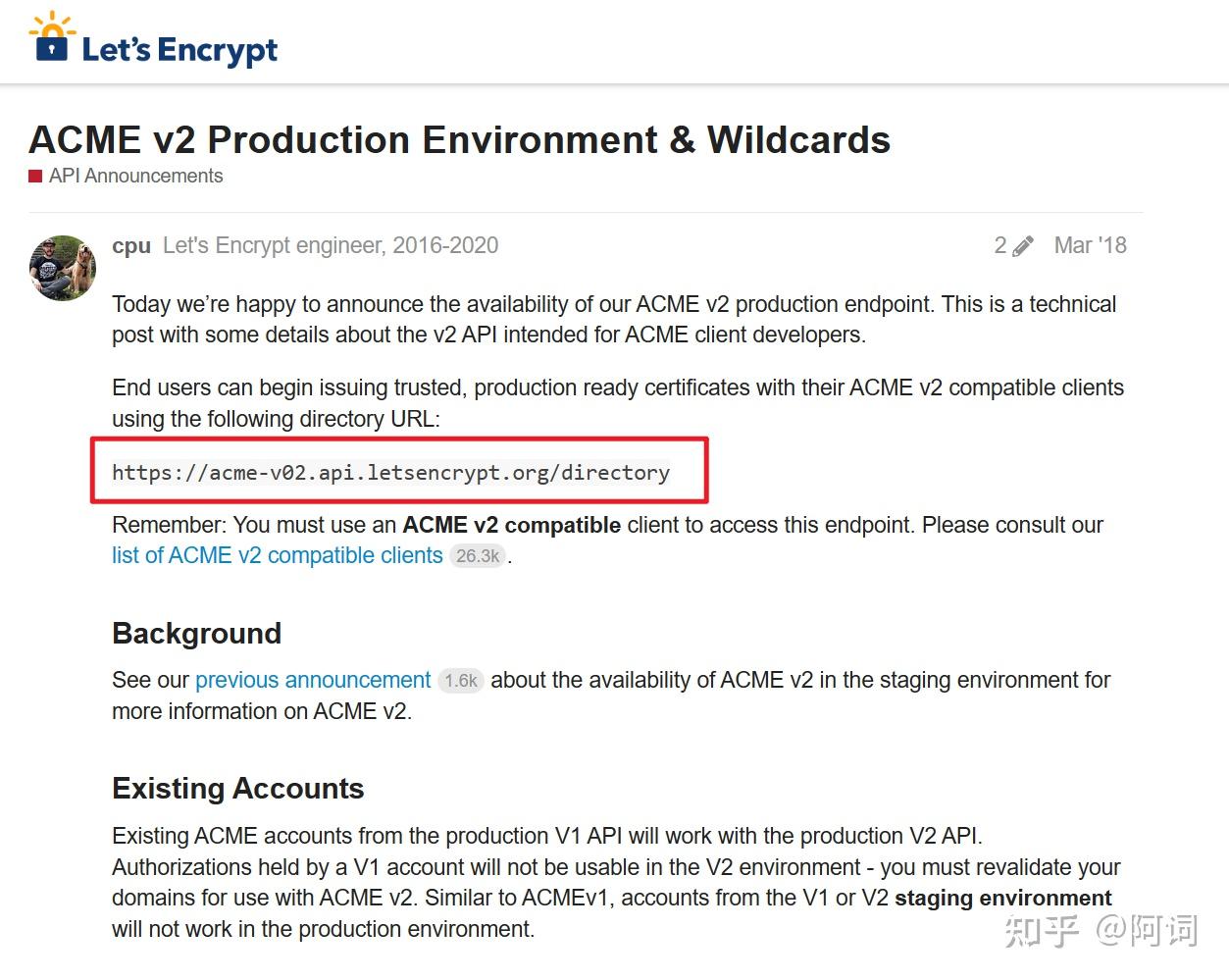 • –server,Let’s Encrypt ACME v2 版本使用的服务器不同于 v1 版本,需要显示指定