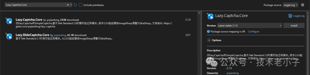 首先,我们需要通过NuGet安装LazyCaptcha: