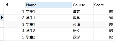 INSERT INTO `t_student` VALUES (1, '学生1', '语文', 80);