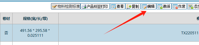 点中一个料号,点击编辑 如下图: