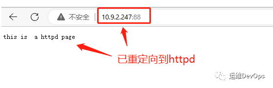 演示例子之前我们先通过yum安装一个httpd,然后修改端口为88,并修改默认界面内容如下:vim /var/www/html/index.html #this is a httpd pag