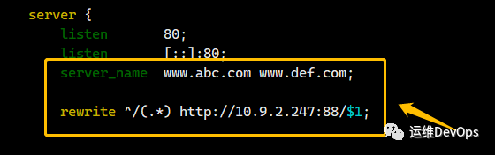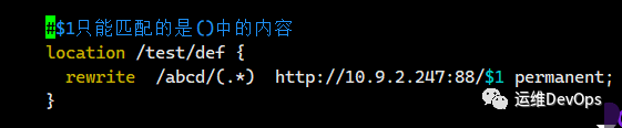 上图中的rewrite有两个括号内容,那么将分别对应$1和$2,因此实际请求将匹配到http://10.9.2.247:88/abc/abc.html