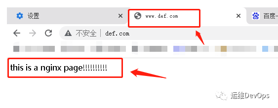 通过浏览器访问www.def.com,可以看到跳转到了Nginx的默认界面,如图: