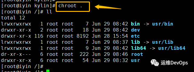 8、执行chroot . 命令,测试镜像目录是否有问题,已进入容器,如图: