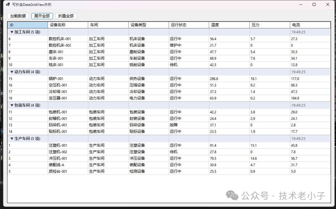 这个问题一个网友提出的,就前一个版本的gridview 做了一些改进,像在一个工厂设备监控项目中,我们需要按车间对设备数据进行分组展示,经过深入研究,成功实现了一个高性能的可折叠DataGridView组件。今天就来分享这个实战经验,帮你轻松解决数据分组展示的难题!
