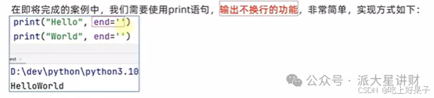 Python是一种解释型、高层次的编程语言,是现代软件开发中最受欢迎的选择之一。Python由荷兰程序员吉多·范罗苏姆在1989年圣诞节期间构思并在1991年发布第一个版本。吉多·范罗苏姆设计Python的初衷是创建一种既易于阅读又具备强大功能的语言,这一目标在其命名上就有所体现——得名于英国喜剧团体“蒙提·派森的飞行马戏团”(Monty Python's Flying Circus),范罗苏姆希望这种语言能够与其偶像一样出色。使用Python语言有许多优点,如语法简单、免费开源、功能强大、跨平台兼容性等。以下将详细列举这些优点:易读易写:Python的语法设计简洁且清晰,使得编写和阅读代码都变得相对简单。与需要大量符号和格式要求的语言相比,Python通过缩进来定义代码块,不强制在每条语句后加分号。伪代码特质:Python常被形容为具有伪代码特质的编程语言,意味着其代码看起来就像加了注释的英文段落,这有助于提高代码的可读性和维护性。完全免费:Python的使用、分发和修改都是免费的。无论是用于个人还是商业项目,用户都无需支付任何费用。开源优势:作为开源语言,Python允许任何人查看和改进其源代码。这不仅增强了透明度,还借助全球开发者的共同努力提升了语言的稳定性和性能。标准库和第三方库丰富:Python拥有大量内置库,从基本的数据处理到复杂的科学计算,都有现成的模块可供使用。PyPI(Python Package Index)是一个包含超过85,000个Python模块和脚本的资源库,提供了丰富的第三方模块支持。广泛的应用场景:得益于强大的库支持,Python在人工智能、数据分析、网站开发、自动化运维等多个领域都有广泛应用。良好的移植性:作为一种解释型语言,Python可以在Windows、Linux、macOS等多个操作系统上运行,而无需修改代码。这种跨平台能力使得开发者可以在不同环境下运行同一代码,减少了移植工作量。灵活的对象模型:Python支持面向对象编程,允许开发者通过类和对象来组织代码,但也不强求必须使用面向对象的方式编写所有代码。这种灵活性让Python既能适应大型项目的复杂需求,也能处理简单的脚本任务。综上所述,Python凭借其简洁易读的语法、免费开源的特性、强大的库支持、跨平台兼容性以及灵活的面向对象特性,成为了现代编程环境中最受欢迎的语言之一。对于初学者和经验丰富的开发者,Python基本都提供了一个高效、易用且功能强大的开发工具。单行注释:以#开头,#在右边 (#和注释内容一般建议以一个空格隔开) 多行注释:以一对双引号引起("""注释内容“”“)查看的是变量存储的数据的类型,变量是没有类型的,而存储的数据是有类型的指用户在编程的时候所使用的一系列名字,用于给变量、类、方法等命名标识符命名中,只允许出现:*英文 *中文 *数字 *下划线(_)这四类元素字符串是没有办法通过加号和整数进行拼接的(无法和非字符串类型进行拼接)综合起来的意思是,我先占个位,等一会有一个变量过来,我把它变成字符串放到占位的位置多个变量占位,变量要用括号括起来,并按照占位顺序填入,变量之间要用逗号隔开。m:控制宽度,要求是数字(很少使用),设置的宽度小于数字本身,不生效.n: 控制小数点精度,要求是数字,会进行小数的四舍五入 %5d:表示将整数的宽度控制5位,如数字11,被设置变成【空格】【空格】【空格】11,用三个空格补足宽度。%5.2f:表示将宽度控制为5,将小数点精度设置为2小数点和小数部分也算入宽度计算。如,对11.345设置了%7.2f,结果是:【空格【空格】11.35。2个空格补足宽度,小数部分限制2位精度后,四舍五入位 .35%.2f:表示不限制宽度,只设置小数点精度2,如11.345设置%.2f后,结果是11.351+1、5*2,就是表达式,因为有具体的结果,结果就是一个数字在无需使用变量进行数据存储的时候,可以之间格式化表达,简化代码使用一个变量接收(存储)input语句获取的键盘输入数据即可布尔类型不仅可以自行定义,同时也可以通过计算的来。也就是使用比较运算符进行计较运算得到布尔类型的结果。Else也可以省略不写,效果等同于3个独立的if判断第二个if属于第一个if内,只有第一个if满足条件,才会执行第二个ifwhile的条件需要得到布尔类型,true表示继续循环,false表示结束循环需要设置循环终止的条件,如i +=1配合i<100,就能确保100次结束后停止,否则将无限循环While循环的循环条件是自定义的,自行控制循环条件for循环是一种“轮询”机制,是对一批内容进行“逐个处理”所以python的for循环无法构建无限循环(被处理的数据集不可能无限大)序列类型:其内容可以一个一个依次取出的内容,包括:获取一个从0开始,到num结束的数字序列(不含num本身)获取一个从num1开始,到num2结束的数字序列(不含num2本身)rang(5,10) 得到:[5,6,7,8,9]获取一个从num1开始,到num2结束的数字序列(不含num2本身)数字之间的步长,以step为准(step默认为1)Python列表是一种内置数据结构,是包含在方括号【】的元素集合,它们具有许多独特的属性,使它们与其他的数据结构不同。Python内置了一个array模块,可用在Python中创建数组,虽然数组保留了Python列表的大部分特征,可以包含重复项、有序且可变,但不能存储不同数据类型的元素。在函数内部,临时保存数据,在函数被调用之后立即销毁变量一个变量记录多个数据,容纳的每一份数据成为1个元素Python中,如果将函数定义为class(类)的成员,那么函数会称之为:方