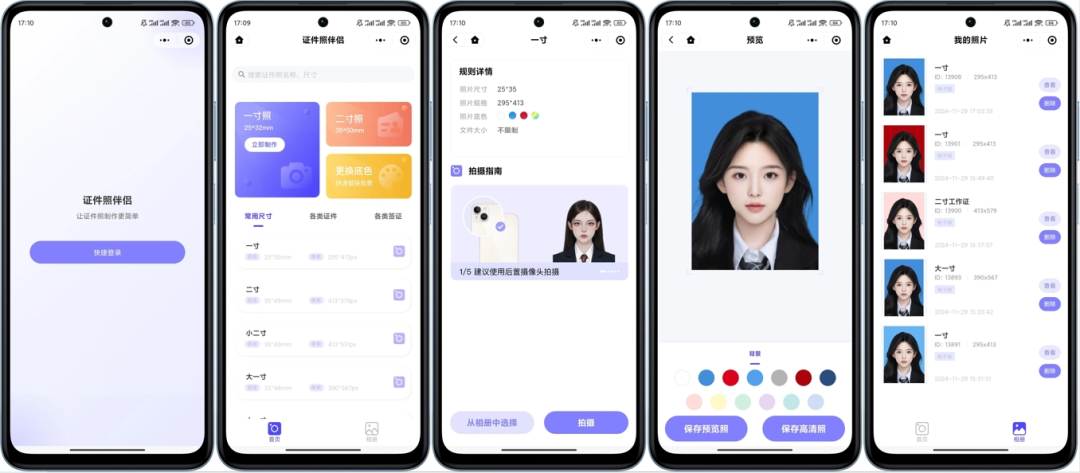 • • 隐私保护: 不保存用户原始图片,仅存储生成后的证件照