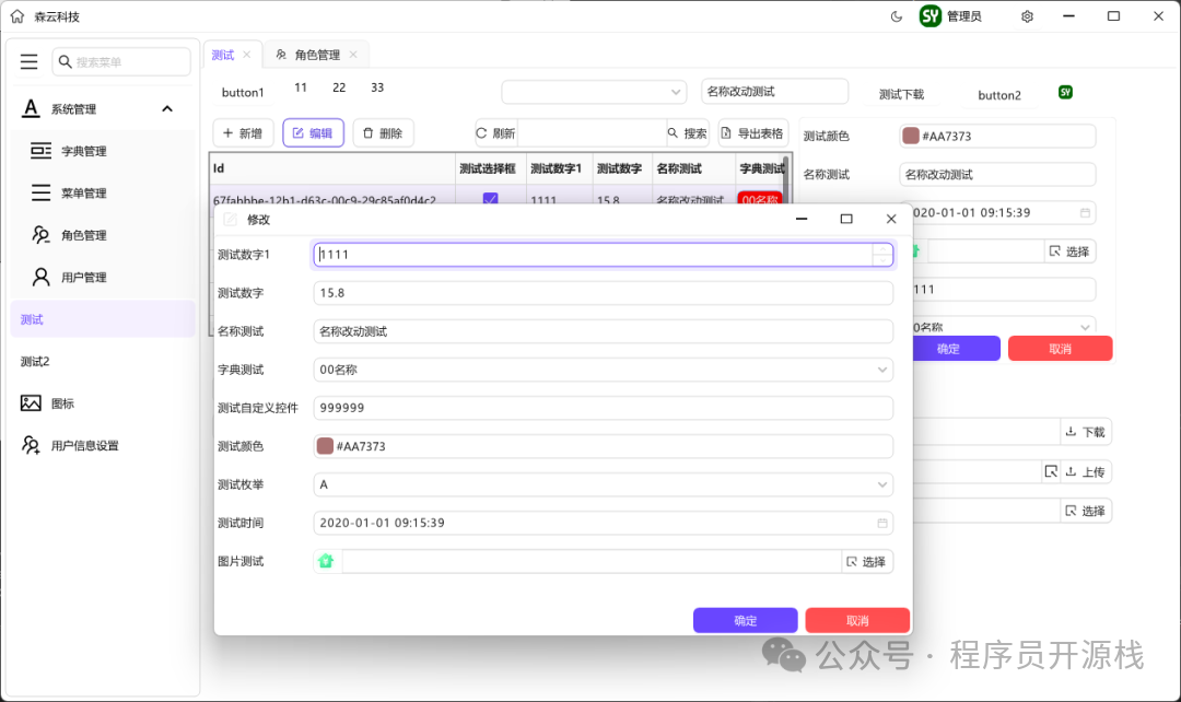 菜单管理:实现菜单的增删改查,支持自定义页面控件和样式。