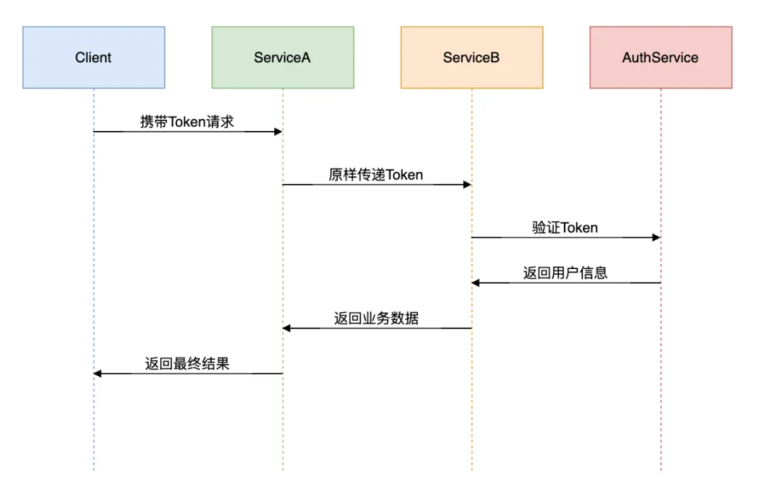 核心问题:服务A调用服务B时Token如何传递