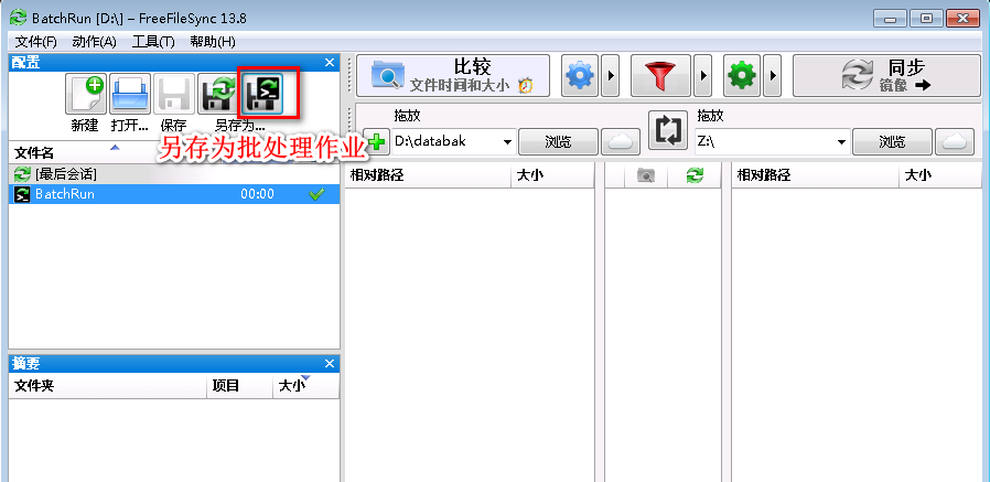 参数填写:"C:\SyncConfig\任务名.rts_batch"(配置文件路径)。