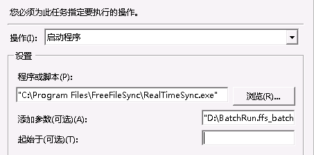 程序路径填写:"C:\Program Files\FreeFileSync\RealTimeSync.exe"(根据实际安装路径调整)。