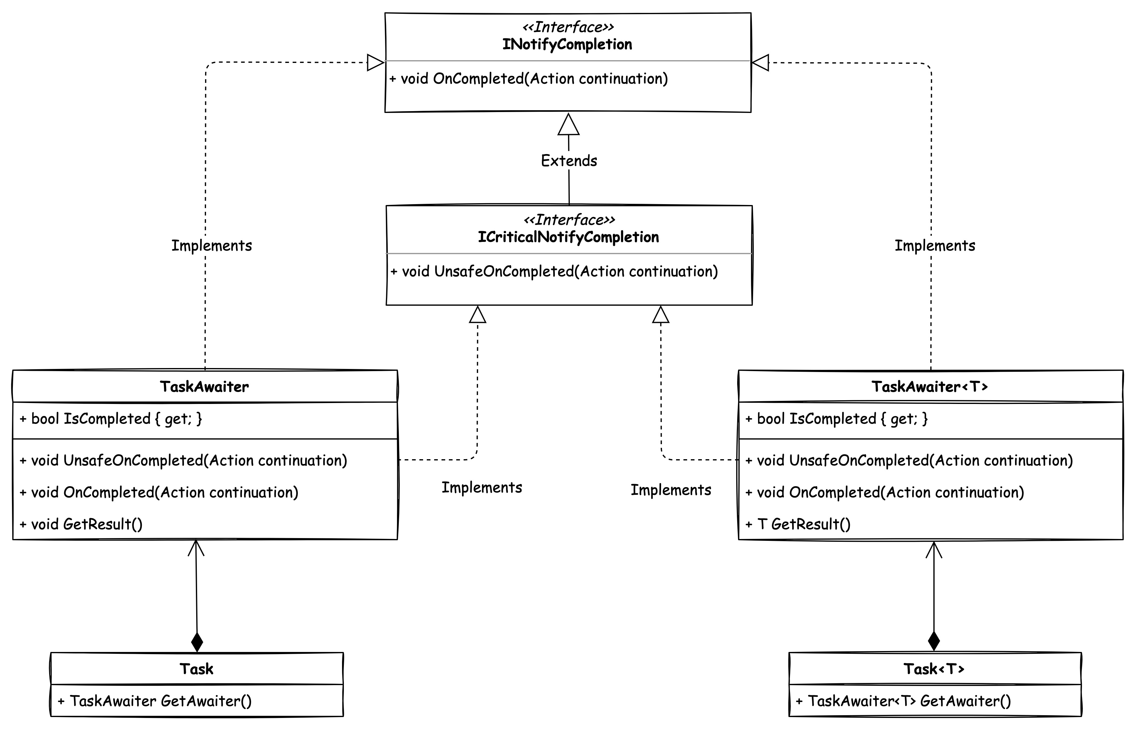 - Awaiter:对 Awaitable 进行封装,负责与状态机进行交互。