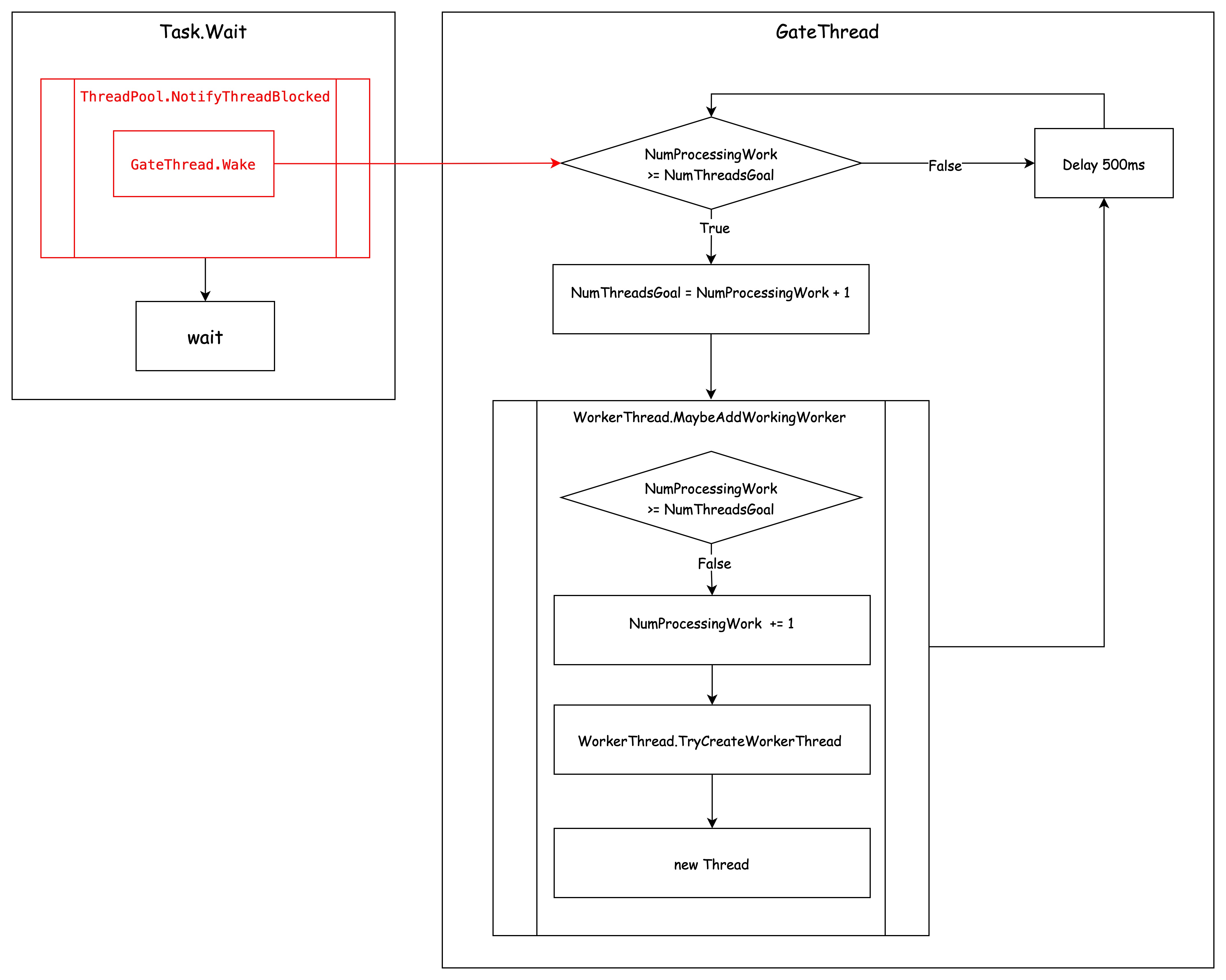 是一个独立的线程,每隔 500ms 进行检查一下,如果 NumProcessingWork >= NumThreadsGoal(WorkerThread.MaybeAddWorkingWorker