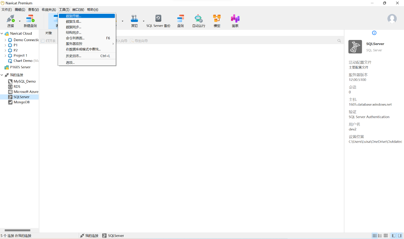 现在,让我们开始演示Navicat这一便捷且高效的数据传输功能。