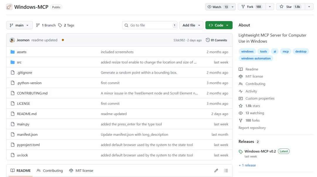 Windows-MCP是啥今天给大家介绍一个超酷的开源项目 - 支持从 Windows 7 到 Windows 11 的所有系统,不管你电脑是老款还是新款,都能用上。 ![]() ![]() 功能特色