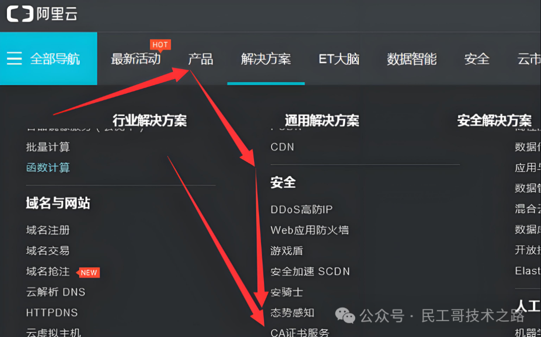 在这个过程中,数字证书的作用是验证服务器的身份,确保客户端与服务器之间的通信安全。同时,对称加密的使用可以提高传输数据的安全性,防止敏感内容被截获和篡改。 当我们在浏览器中输入一个网址时,如果该网站使用了HTTPS证书,那么浏览器地址栏会显示一个小锁标志,表示该网站是安全的。 今天给大家介绍一下免费申请 HTTPS 证书六种方法! 阿里云