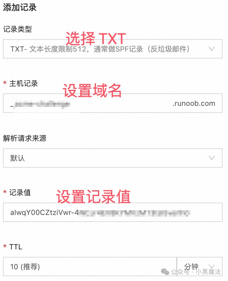 添加完成后,先输入以下命令确认 TXT 记录是否生效: