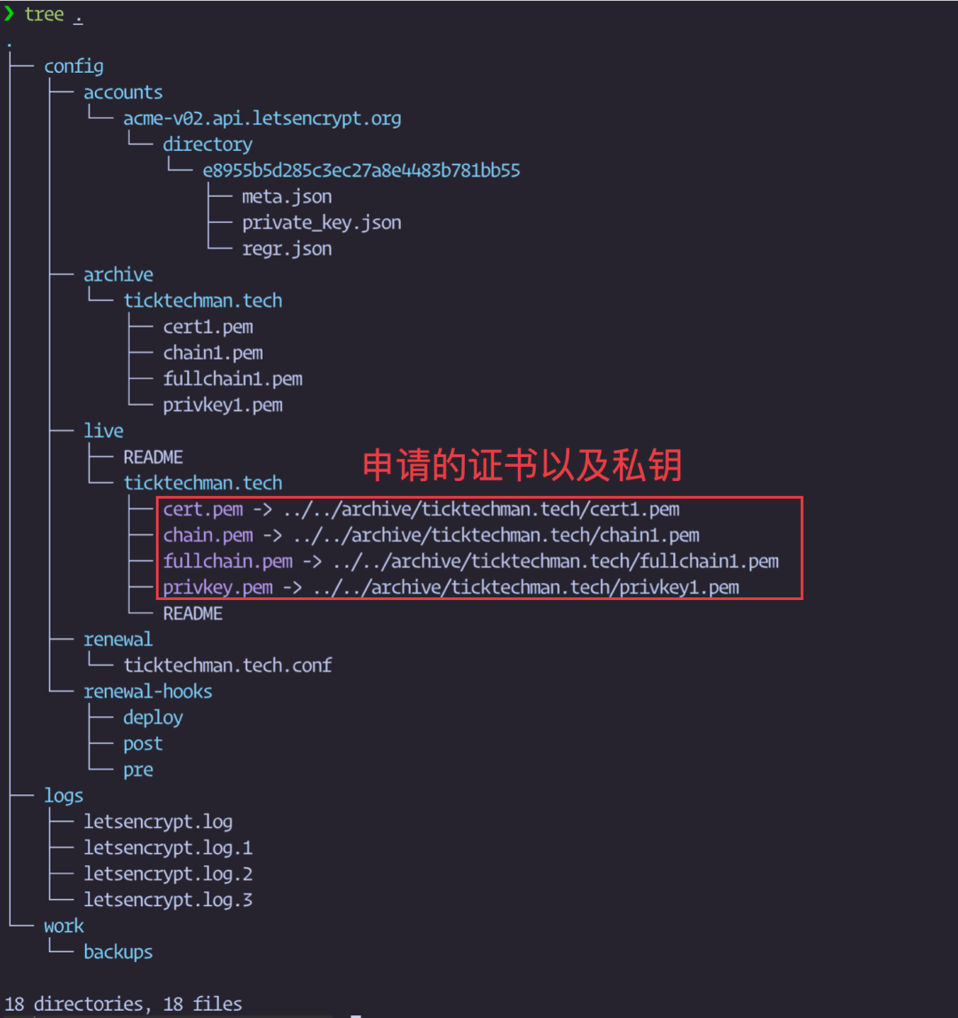 申请成功后,在当前目录下会生成如下的目录和文件: