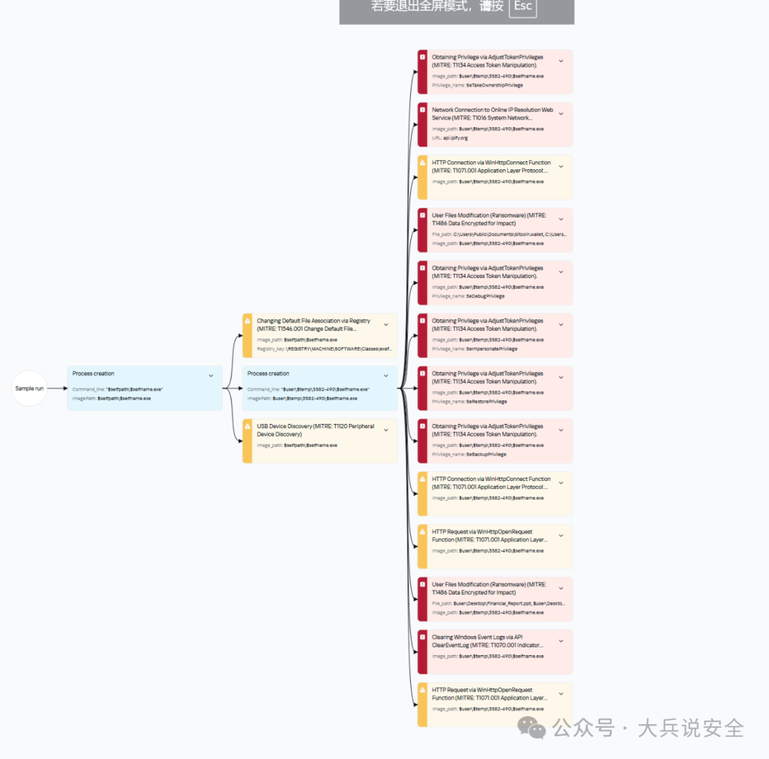 今天临近下班,突然接到客户电话,说他一个朋友公司服务器被勒索了,让我们帮忙看一下。技术人员远程连接到该服务器,这是一个很有代表性的情况:3、使用财务软件自带的备份功能将数据库进行了备份,但备份文件在本硬盘的不同分区。技术人员将日志导了出来,进行分析。通过分析找到了攻击源和攻击路径,黑客利用畅X通的漏洞,对系统进行注入攻击,从远程下载恶意程序后实施加密操作。根据分析结果,技术人员在服务器上找到了黑客留下的恶意程序。将该恶意程序上传到卡巴斯基情报平台,通过后台归因引擎和沙箱分析,得知该病毒属于MALLOX家族,平台给出了该恶意程序的详细报告,包括哈希值 、执行时的具体动作,如修改的注册表、释放的文件等,以及各动作对应在ATT&CK模型中所处的环节。1、网络隔离,暂时将该主机从网络中隔离出来,在防火墙上限制黑客使用的几个IP地址的访问权限。