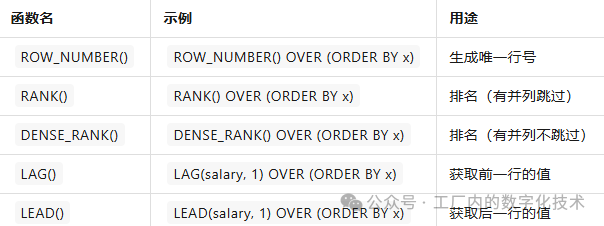 4. 常见窗口函数
