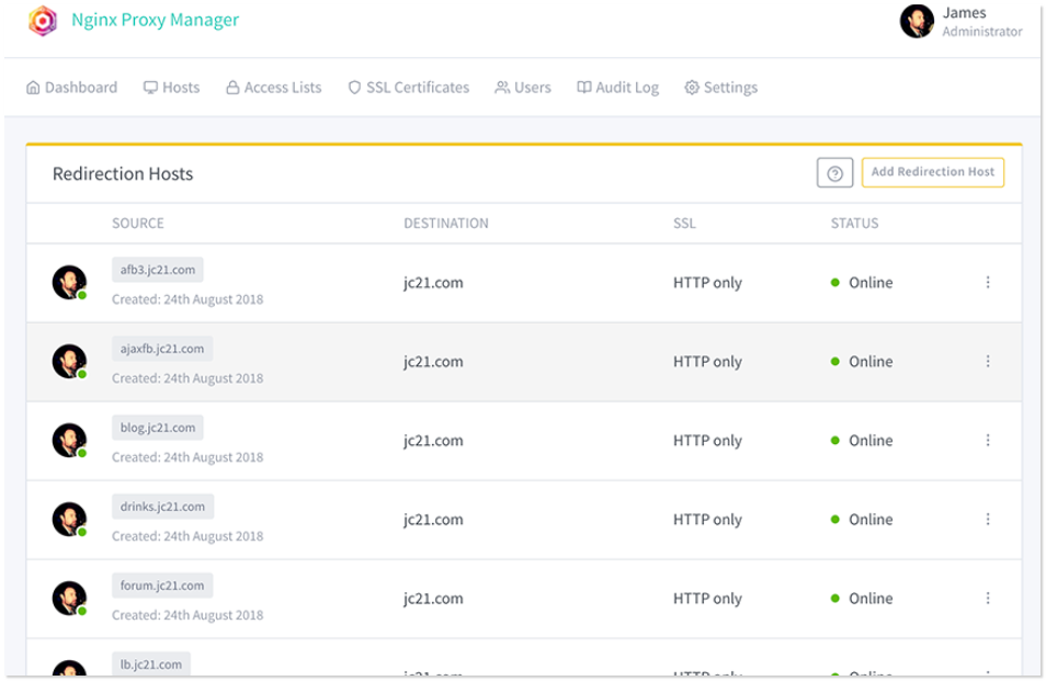 ![]() ![]() 自动化 SSL 证书:内置 Let's Encrypt 支持,可以为你的域名一键申请免费 SSL 证书,并且能够自动续期。再也不用操心证书过期的问题了,省心省力。如果你有自己的商业证书,它也支持上传和管理。 访问控制与权限:可以创建访问列表(Access Lists),限制哪些 IP 地址或者用户可以访问特定的代理主机。还支持基本的 HTTP 用户名密码认证,为你的服务多加一层保护。 支持 WebSocket 和 HTTP/2:对于需要 WebSocket 通信的应用,或者想开启 HTTP/2 提升网站加载速度,Nginx Proxy Manager 都能很好地支持。 Docker化部署:官方推荐使用 Docker Compose 进行部署,简单快捷,环境隔离,不污染宿主机。对于喜欢容器化部署的朋友来说,简直是绝配。 最推荐、也是最简单的方式,当然是 Docker 啦! 只需要创建一个 docker-compose.yml 文件,把官方的示例复制进去, 稍微改改数据卷的映射路径(如果你有特殊需求的话),然后在终端里 cd 到那个目录,执行 等它跑起来之后,用浏览器打开你服务器的 IP:81(默认的管理端口是 81),就能看到登录界面了。 默认的管理员账号和密码在官方文档里也有说明(通常是 admin@example.com 和 changeme),登录进去就可以开始你的可视化 Nginx 配置之旅啦! 阅读原文:原文链接 该文章在 2025/9/1 10:20:25 编辑过 |