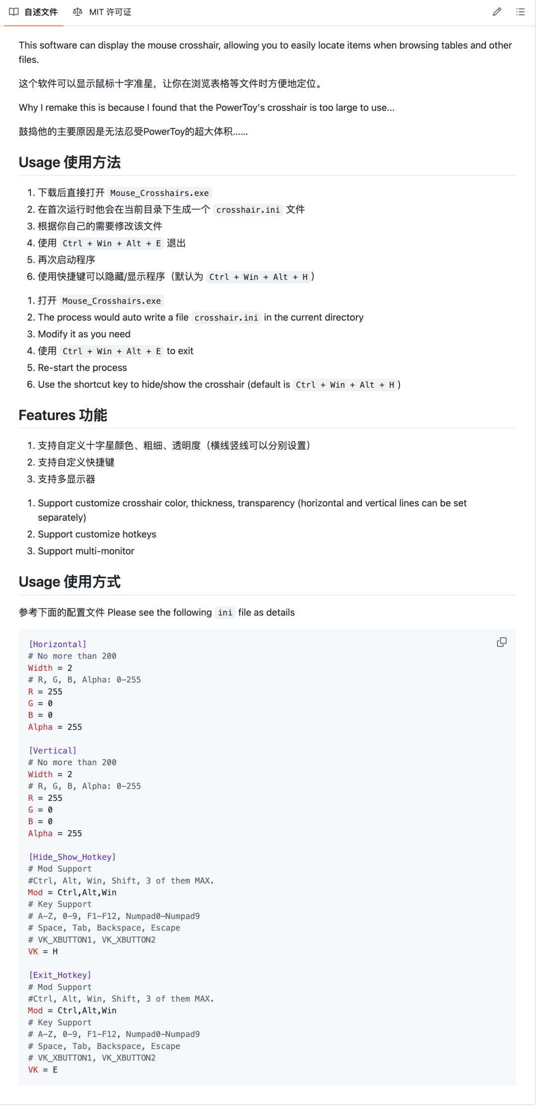 - • 从 GitHub Releases 下载 Mouse_Crosshairs.exe;
