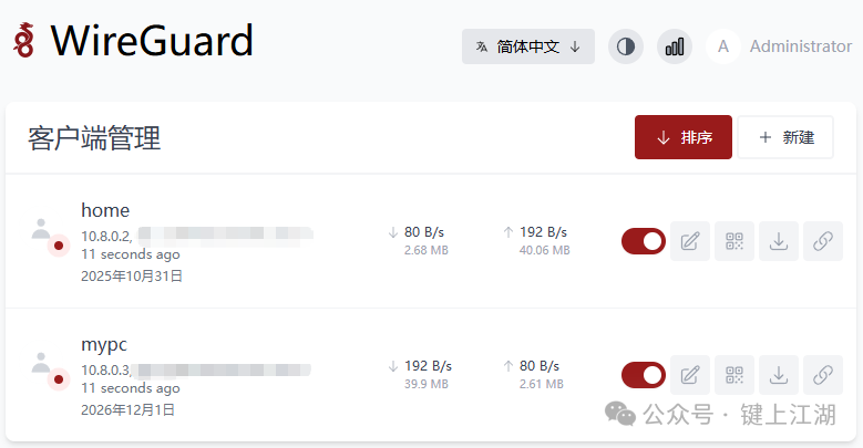 - wg-easy 服务端(已部署好,支持 Docker,一键配置即可)