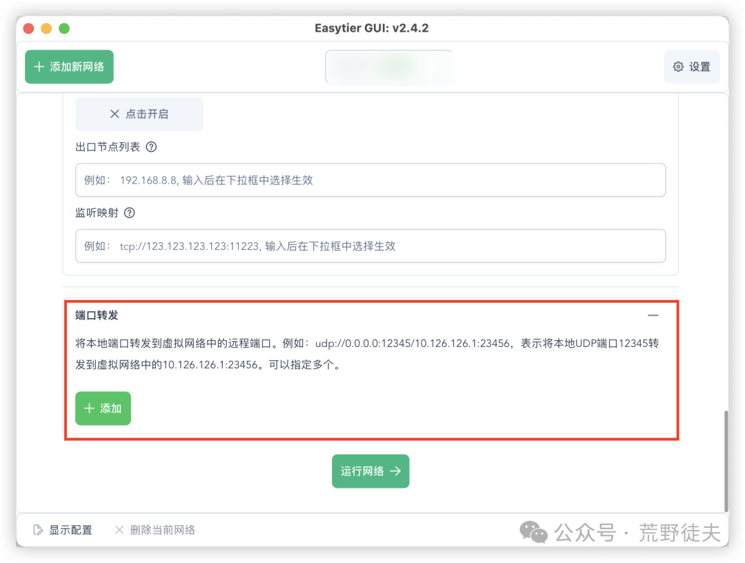 这里不得不再次提一下异地组网工具中的后起之秀——EasyTier。EasyTier 在设计之初就考虑到了“服务共享”这个现实需求,已内置端口转发功能,无需额外部署 Nginx 或 HAProxy 这类反向代理工具。