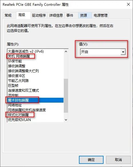 步骤3:开启WOL相关选项