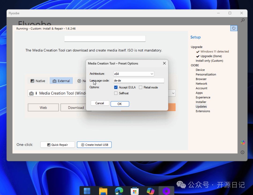 2.下载后,直接运行主程序,按照步骤选择需要升级或安装的 Windows 11 系统包。- 3.Flyoobe 会自动处理硬件校验,并提供优化选项。整个流程极简,即便是“小白”也能轻松上手。