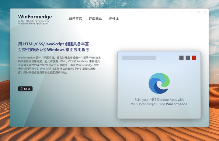 目前 WinFormedge 项目已在 Github 和 Gitee 进行托管,并使用 MIT 开源协议开放源代码,欢迎各位 .NET 开发者安装体验。