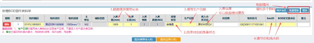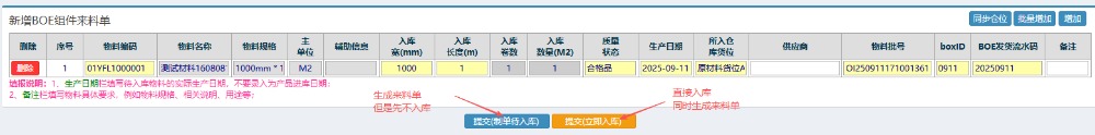5.提交之后,可以在左侧的功能菜单里找到“BOE组件来料入库单”,点击进入 ![]()